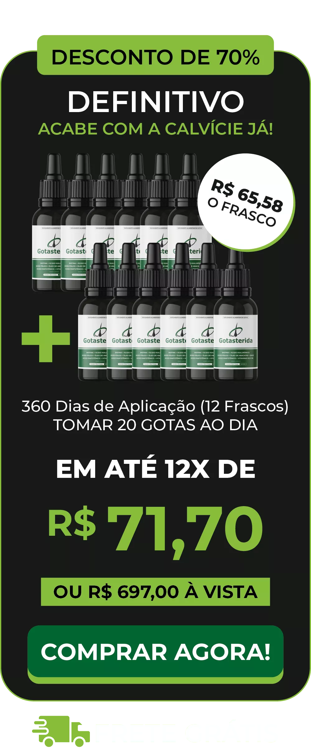 Você está prestes a desbloquear uma mistura poderosa de ingredientes naturais que os especialistas em cabelo chamam de “elixir do crescimento capilar”. O Gotasterida contém uma sinfonia de biotina, ácido hialurônico, ácido fólico, óleo de abacate, zinco, ácido pantotênico, vitamina B2 e B6 – uma combinação que cria uma tempestade perfeita para cabelos mais espessos e radiantes.