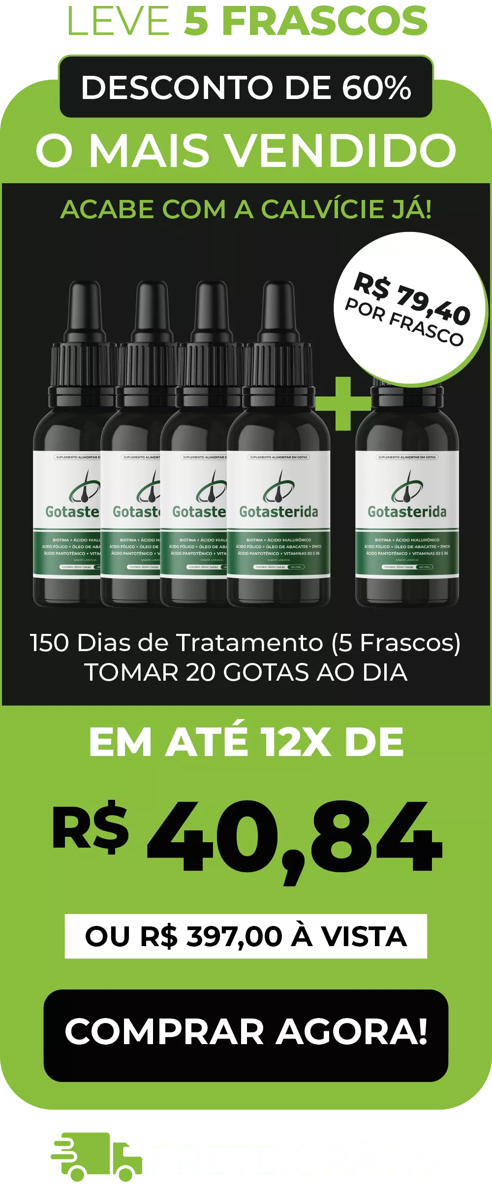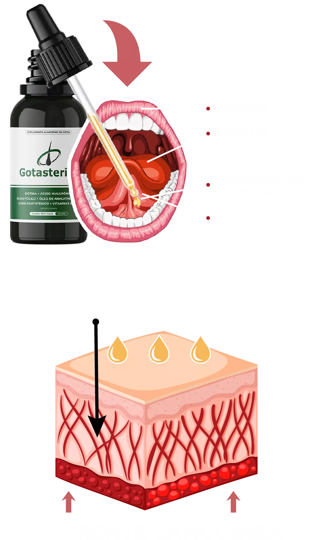 Desenvolvida e recomendada por especialistas, Gotasterida é utilizado de forma sublingual, trazendo resultados cinco vezes mais rápidos do que cápsulas ou cremes.